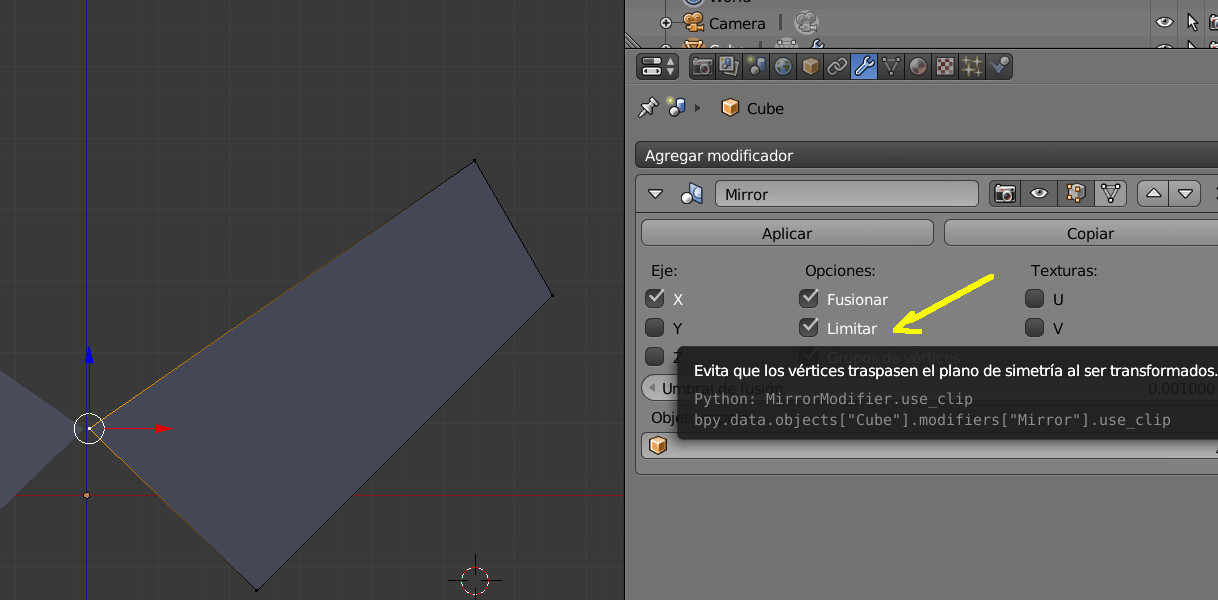 En Español es Limitar y lo que hace es que une los vértices cuando se juntan en el centro no dejando moverlo más, aunque en realidad debería de funcionar cuando lo separas.