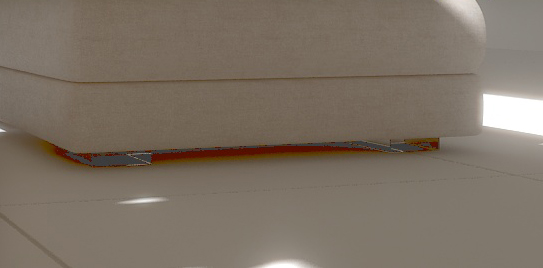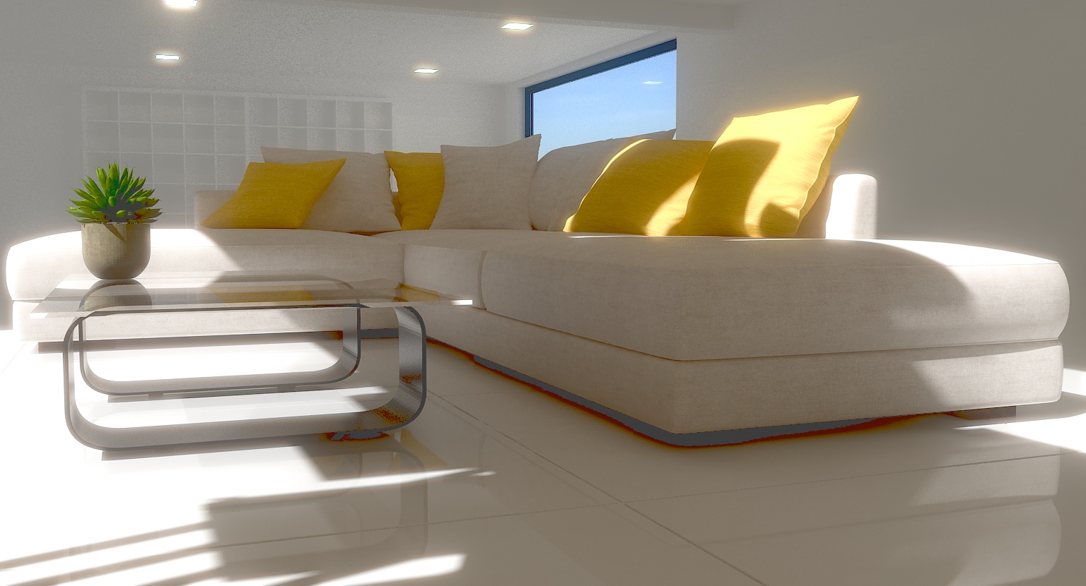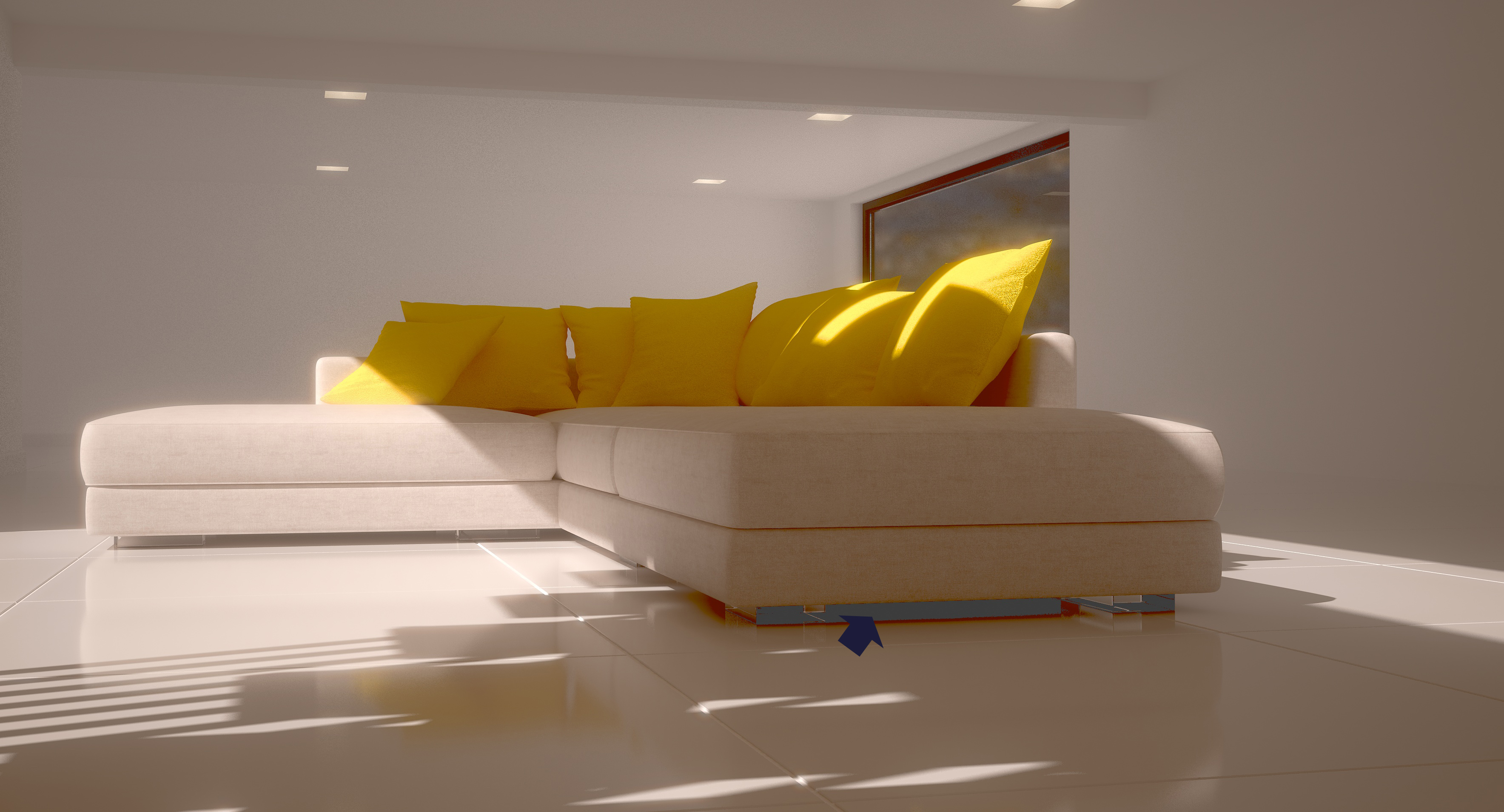 efectivamente gran parte del problema era el reflejo en el suelo del interior del sofá, hice un render de prueba