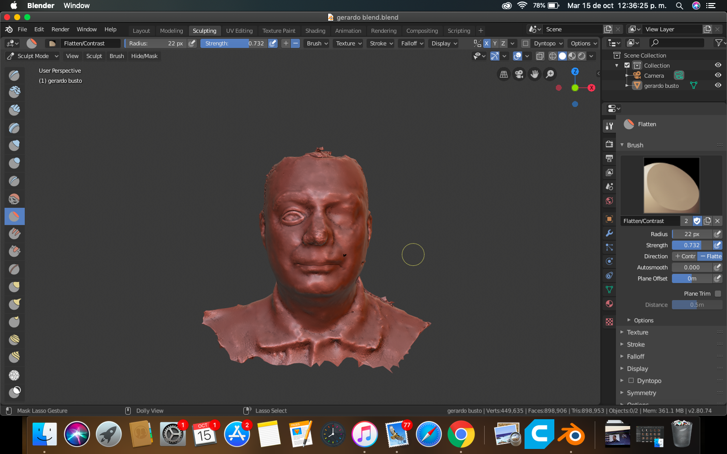 No estoy seguro de porque pasa, escanee a alguien y utilicé meshroom para hacer el modelo, de ahí empecé a trabajarlo en modo escultura para detallarlo bien, la cosa es que cuando estaba haciendo la comisura de los labios y parte de la nariz me di cuenta que se veía reflejado sobre uno de los cachetes, ¿alguien sabe como puedo quitar eso? o ¿cómo puedo solucionarlo para que ya no pase? no tengo activada ninguna función de mirror por eso me saca de onda, estoy usando Blender 2.8