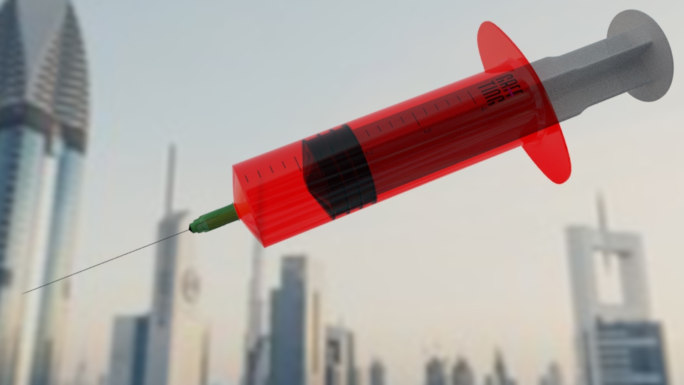 La primera jeringuilla, tiene un material ArnoldSurface sin ninguna textura, esa se ve bien, pero cuando aplico la textura y después la transparencia, es cuando se vuelve rojo, como se ve en el segundo render.