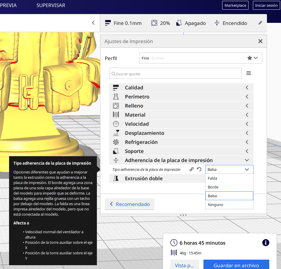 Si no me equivoco eso es una base que se puede seleccionar en lugar de Adherencia de la placa de impresión (en CURA) llamada BALSA