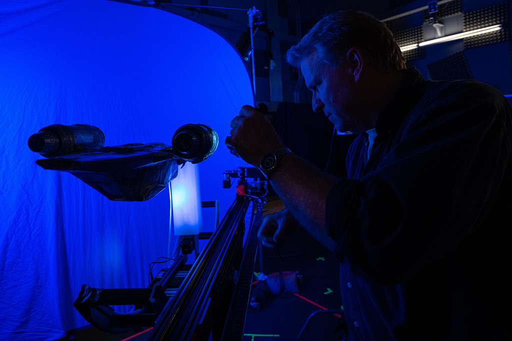 Mientras que algunas escenas se hicieron en imágenes digitales o con sets físicos a gran escala, el equipo de la serie también estaba interesado en anclar el proyecto en la larga historia de Star Wars, creando una maqueta para rodar secuencias espaciales.