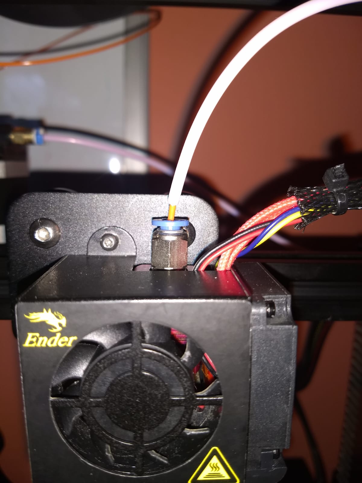 Buenas tardes, tengo un problema con mis impresiones de la Ender 3. No esta extruyendo, por lo cual probe cambiando boquilla, también tubo de teflos. y l momento de empujar el filamente manualmente sale un poco y luego ya hay que hacer mucha fuerza y se me tapa el hotend.Al desarmar la boquilla encuentro pelotas (como en las imágenes que adjunto).A causa de eso el tubo de teflón se sale después de la obstruccion,el material es PLA.