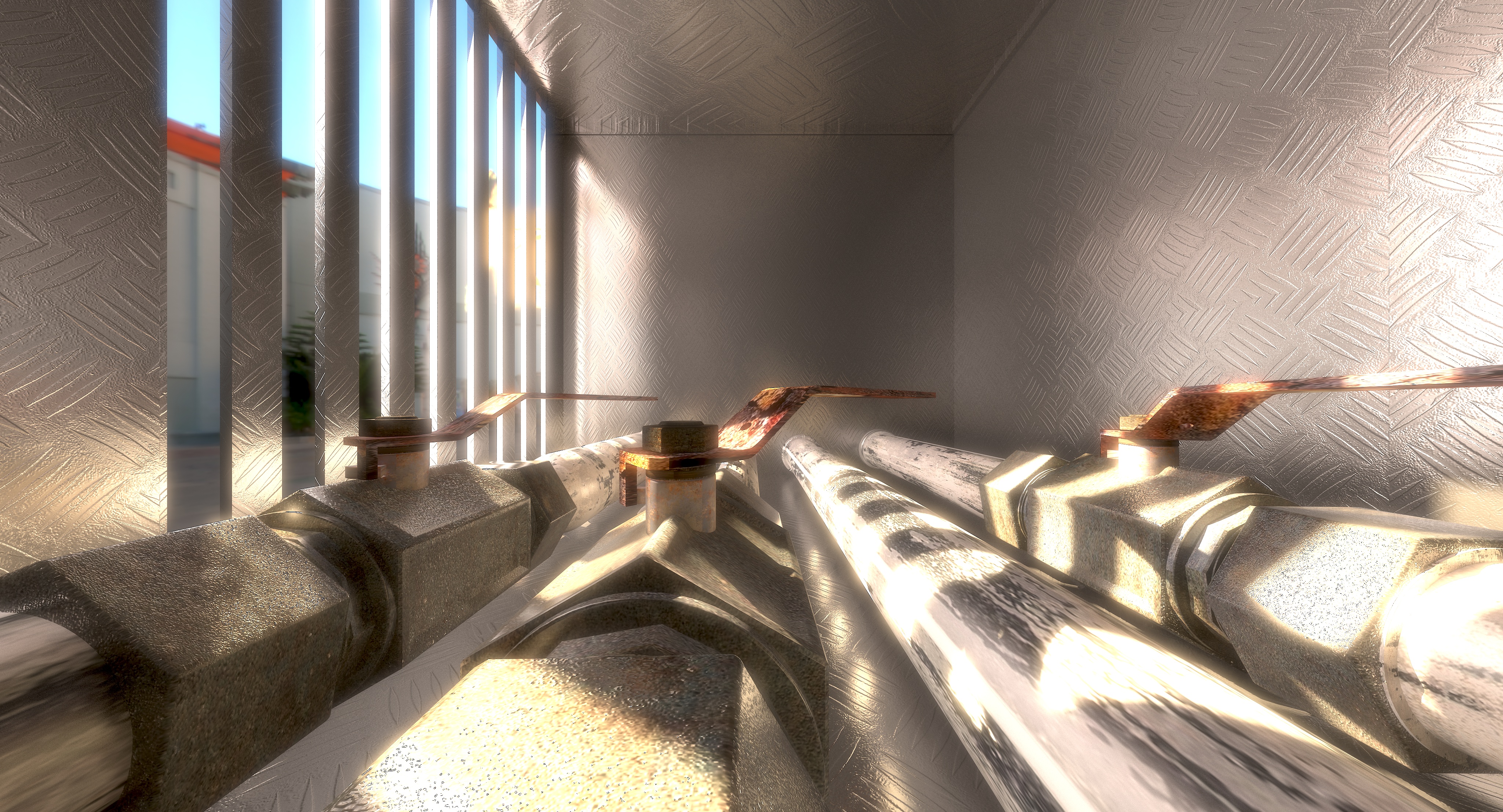 Buenos días a todos, cuelgo un detalle de tubos de gas natural, renderizado con materiales y con mallas. Un saludo.