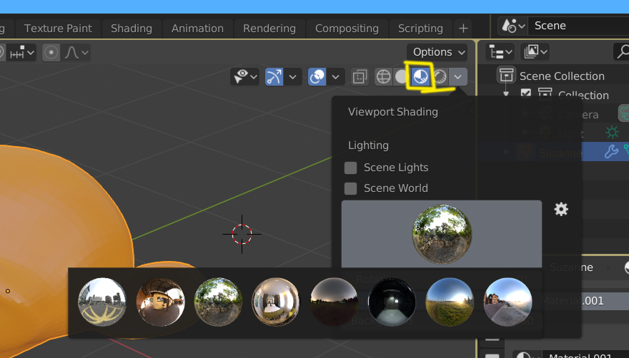 El que pones primero, es un Material Preview donde aunque tu no tengas imagen HDR en el World, el programa si lo utiliza para que veas el resultado.