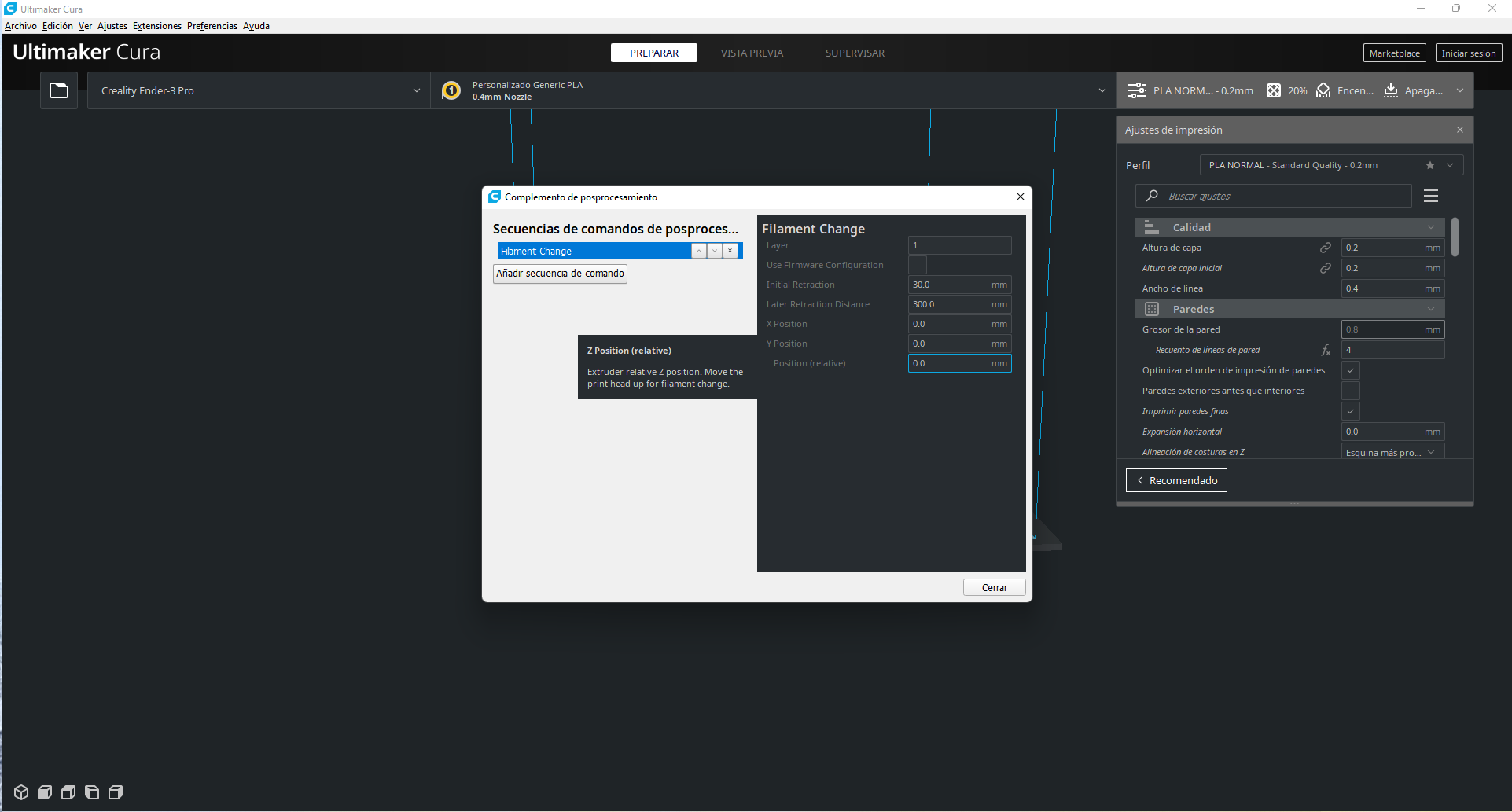 Mi problema reside en que tras muchas pruebas, configuraciones en Cura y sus opciones de post-procesado (change filament, pause at height layer) siempre a la hora de cambiar el filamento, cuando realiza el movimiento para irse al punto X,Y del cambio (sea cual sea) se queda la boquilla tan pegada que lo funde y me lo estropea ( o suelta una gota encima del modelo) . no se que es, he buscado por todos lados y no se que hacer.
