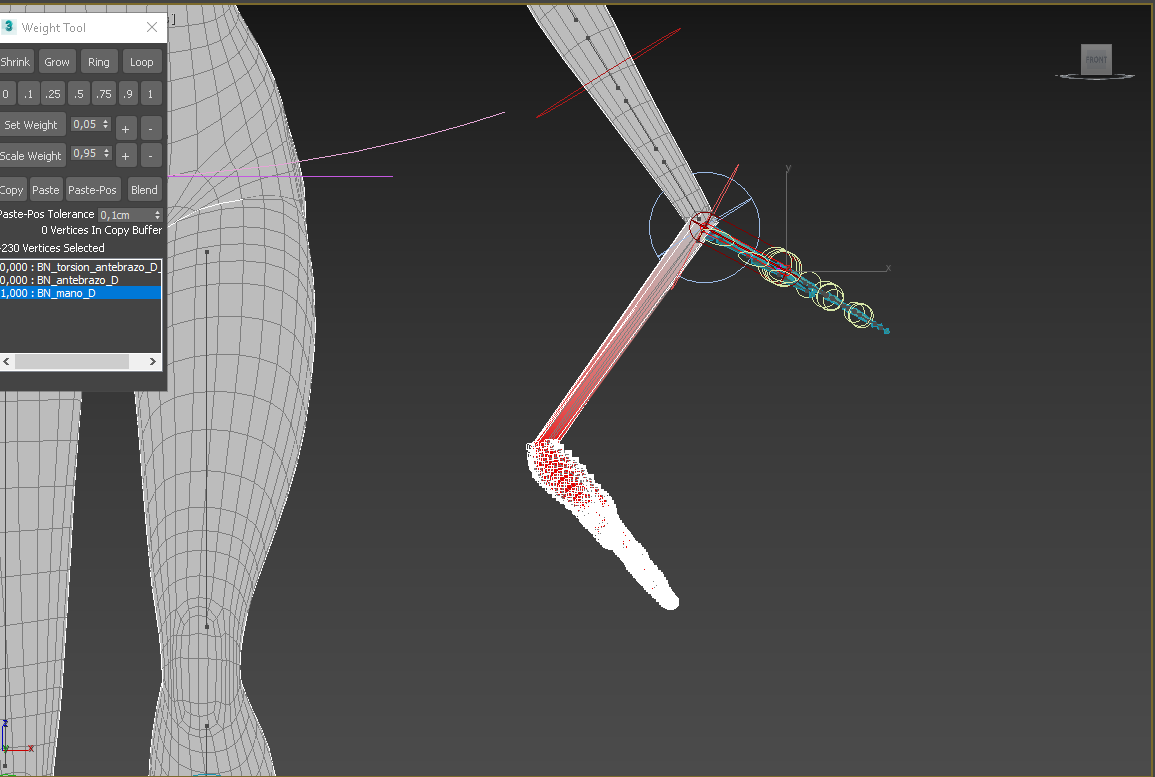 Estoy acabando el skin de mi personaje y todo ha ido bien hasta que he llegado a los huesos de la mano. Al darle la intensidad de unión con los huesos (perdonad que no sé que terminología se usa) y aunque esté en la posición inicial, la mano se va a otra posición. También me ocurre con los huesos de las manos. Adjunto imagen.