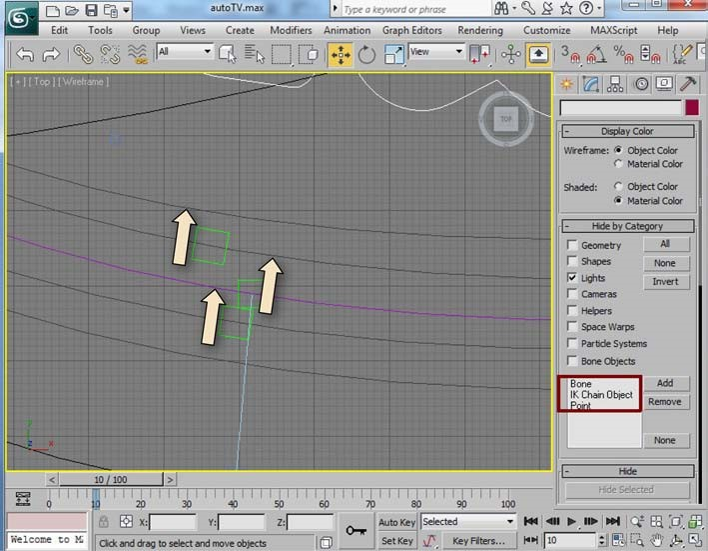 1) Activamos la opción AutoKey de la barra inferior para ir añadiendo fotogramas clave en la animación.