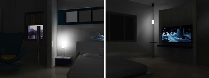 3) Seguidamente, la colocamos a una altura un poco por encima del suelo e inclinada un poco hacia arriba. Esto hará que el efecto sea de grandiosidad de la habitación.