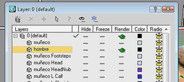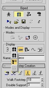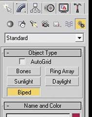 Por defecto, MAX ha asignado a nuestro bípedo el nombre Bip01. Podríamos haberlo cambiado antes de crearlo desde la ventana Name and Color del panel de creación, pero es muy probable que no lo hayamos hecho. En ese caso, podremos cambiarlo ahora desde el panel Create Biped haciendo clic en la casilla Root Name.