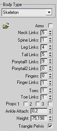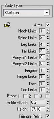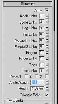 Para poder ver las características del bípedo que vamos a crear, es necesario desplegar el menú Create Biped, que se encuentra en la parte inferior de este mismo panel.