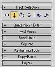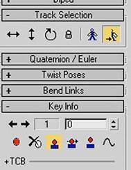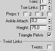 Este centro de masas queda identificado por un pequeño tetraedro azul. Por defecto y, en tanto en cuanto no entremos a editar o modificar las dependencias de un bípedo, este centro de masas queda siempre colocado a la altura de la pelvis.