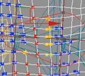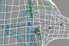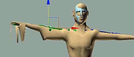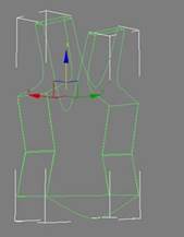 Si hacemos clic en este botón, aparecerán en los diferentes visores un muñeco con diversos puntos activos. Arrastrando cada uno de los puntos del muñeco a la zona que nos convenga del personaje que queremos vestir, estaremos indicando la zona en la que debe colocarse la malla que hará las veces de tejido.