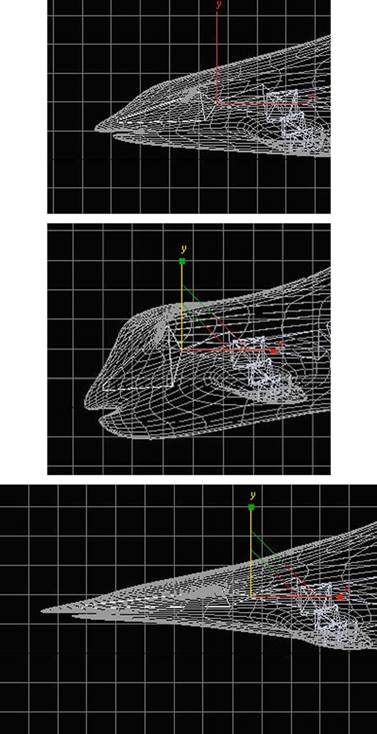 Consejos: cuando hacemos una modificación sobre cualquier parte del bípedo es muy conveniente prestar atención a cómo afectan dichos cambios a las diferentes vistas, ya que suele ser habitual que lo que en un visor funciona correctamente no esté bien posicionado en otro visor. Es importante recordar que estamos trabajando siempre en tres dimensiones.