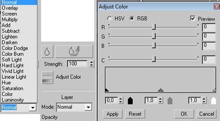 Todos los elementos contenidos en este panel permiten, además de trabajar mediante valores numéricos, trabajar en base a mapas de bits. Ello es posible haciendo clic en el botón de la derecha de cualquiera de los apartados.