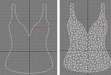 Una vez dibujados todos los patrones, deberemos aplicar el modificador Garment Maker. Cuando lo hagamos, dicho modificador creará automáticamente la malla del recorte de ropa sobre el que lo apliquemos.