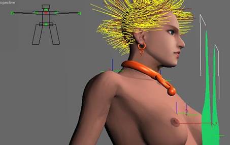 Activar el modo de visualización de los pelos guía puede ser un poco incómodo de trabajar, en cuanto a aspecto visual del proyecto, pero facilita enormemente el proceso de peinado del conjunto, ya que lo que a los pelos guía se aplique, quedará automáticamente aplicado al resto de pelos que de él dependan.