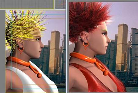 A partir del momento en que actualizamos la selección, crecerá pelo en la zona seleccionada. Este pelo será completamente independiente del anterior, con lo cual podremos ajustarlo de tamaño, forma y color sin que por ello quede afectado todo el que hayamos creado con anterioridad.