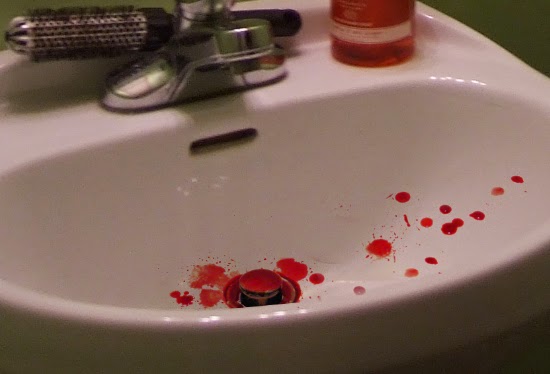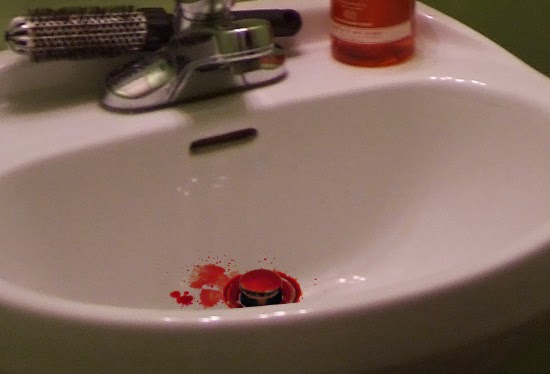 Crearemos ahora algunas salpicaduras de sangre en el lavabo del baño. Abre la imagen del Desagüe y colócala en el interior del lavabo. Añade una Máscara de capa, oculta los bordes y cambia su Modo de fusión a Oscurecer.
