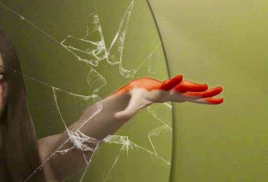 Vamos a crear ahora el efecto roto en el espejo. Para ello utiliza los Pinceles de cristales rotos que descargaste previamente desde la sección de Recursos de este Tutorial. Selecciona el 984 (en una nueva capa, por supuesto) y ajusta tu color de primer plano a Blanco. Una vez creado el efecto baja la opacidad al 60%, añade una Máscara de capa y oculta todos los fragmentos de cristal y grietas que te quedaron por fuera del espejo así como los que quedaron por encima de la mano y parte del brazo.