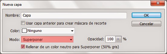 Para hacer que los ojos se vean más horribles, ve a Capa/Nueva/Capa y en el menú desplegable ajusta su Modo de fusión en Superponer y haz clic para rellenar de 50% gris.