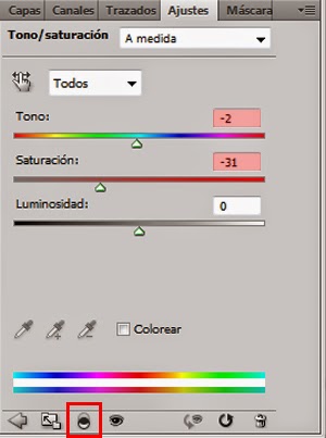 Para cada capa de salpicaduras de sangre crea un Ajuste de Tono/Saturación (con Máscara de recorte) para aumentar los rojos y adaptarlos a el color de la sangre que cae desde arriba.