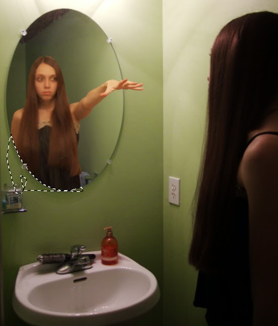 Añade una Máscara de capa para ocultar las zonas de la modelo que queden por fuera del espejo y así poder conseguir dar la sensación de que ese es el reflejo que realmente produce el espejo.
