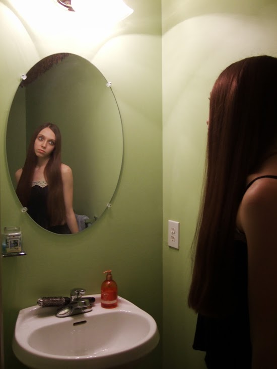 Abre las dos imágenes de la modelo. Recorta la parte superior del Fondo 1 y selecciona la modelo del Fondo 2. Coloca la imagen seleccionada sobre el Fondo 1 y asegúrate de que el tamaño es lo suficientemente grande como para ocultar completamente el reflejo en el espejo.