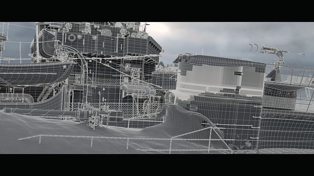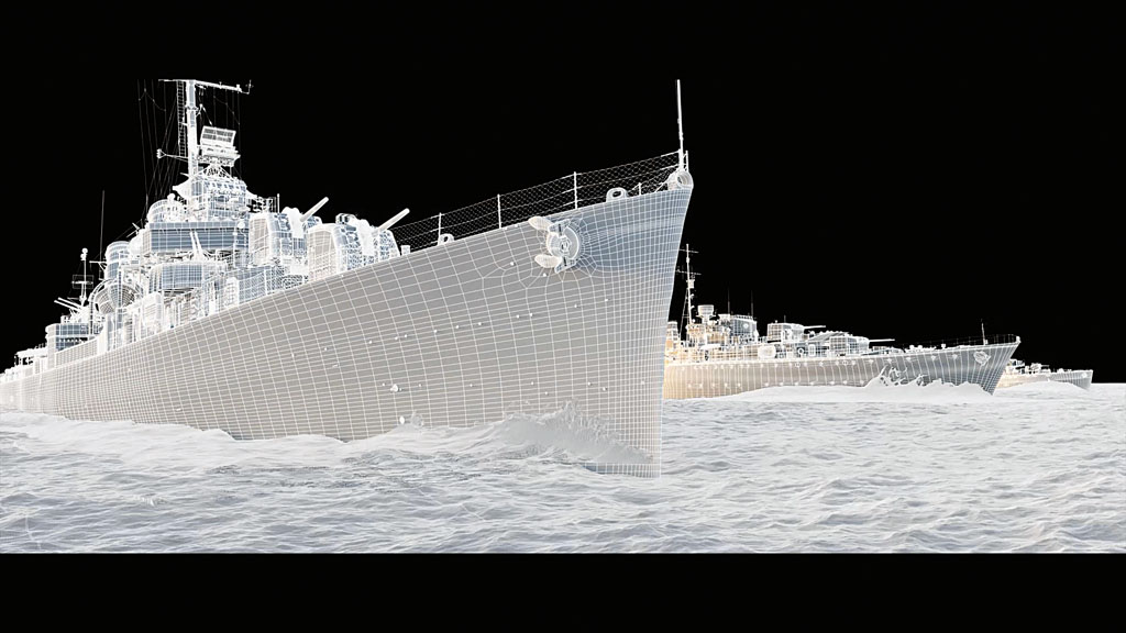DNEG visitó el HMS Belfast en Londres para hacerse una idea de cómo se construyeron realmente los destructores de la clase Fletcher y aplicó ese conocimiento a las versiones de CG.