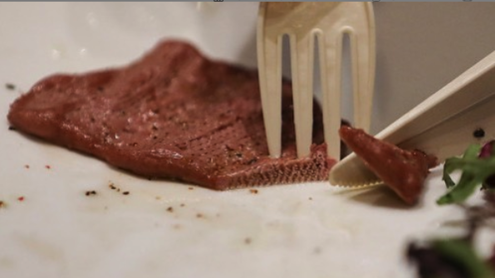Filete de verduras con impresora 3d. Una empresa llamada NovaMeat con sede en Barcelona ha conseguido crear un filete de carne con una impresora 3D a partir de vegetales. Simula la apariencia y la textura de un filete de vaca, pero no es muy exacto. Según su opinión, da la sensación de estar cortando un trozo de carne fibroso real.