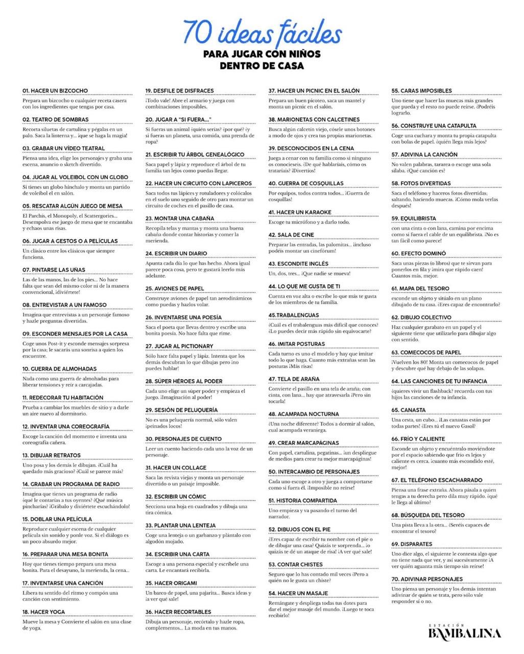 70 ideas fáciles para jugar con niños dentro de casa.