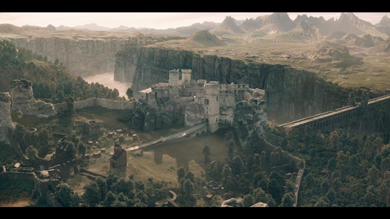 Algunos escenarios fueron ampliados digitalmente o generados por completo, como castillos, ruinas o bosques encantados. Estas ampliaciones se trabajaron en 3D sobre entornos reales, respetando la dirección de arte general y el tono visual de la producción. La postproducción en Nuke permitió integrar niebla, efectos atmosféricos y degradados mágicos sin romper el realismo.