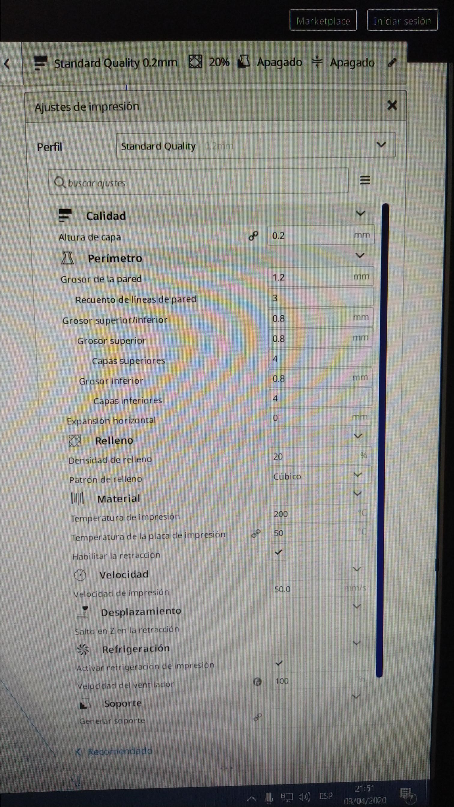 Resulta que la impresora me está imprimiendo mal, la 1 capa la hace bien pero las siguientes capas se quedan como si el extrusor estuviese arrastrando por la capa anterior y hay zonas en las que imprime con algo de brillo y liso y hay zonas en las que imprime y se queda como rasposo y mate, empecé cambiando en cura la calidad de impresión de low a standard e imprimía mejor pero a los días volvia a fallar ahora he cambiado la calidad a dynamic y lo mismo sigue fallando.
