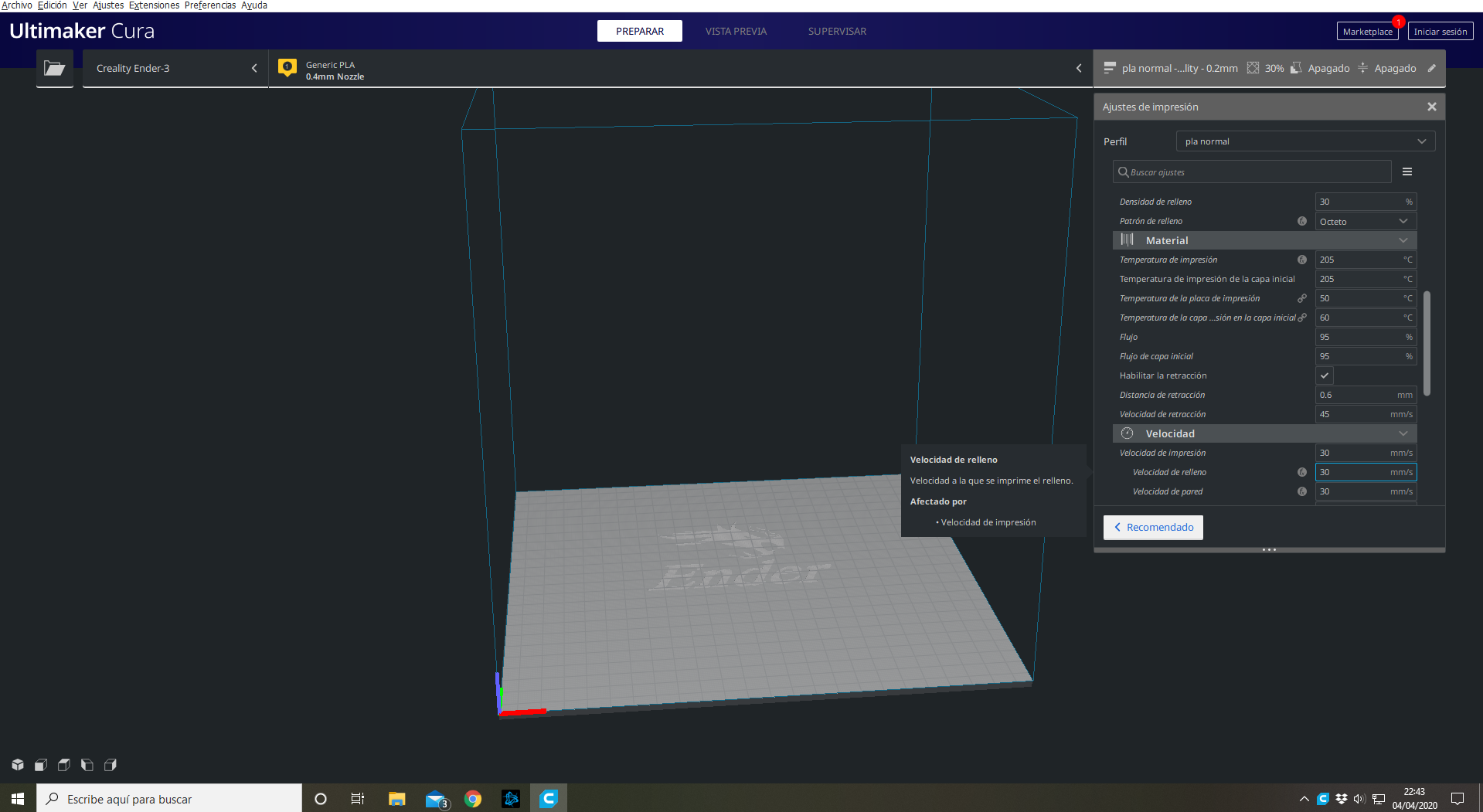 Pensé que era el extrusor que echaba demasiado hilo pero lo he comprobado haciendo una extrusión de 10 milímetros y lo ha extruido exacto, he calibrado la cama 100 veces y nada, creo que el problema viene del cura que lo tengo mal configurado pero no se ya ni que tocar ya que la tengo configurada para Ender 3 con las opciones que te trae predeterminadas el mismo cura y deberían estar bien por lógica. Me gustaría que me echaseis una mano es más si hay alguien en el Foro de la zona de La Safor (Gandia) y me puede ayudar aunque sea pagando se lo agradecería ya que llevo 1 mes con problemas y no veo la luz.