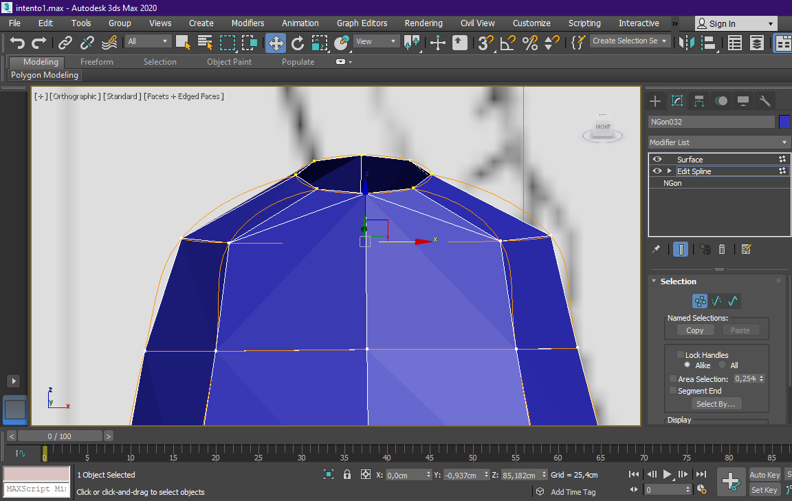Estoy aprendiendo a usar el programa, y este vértice no se incluye en la superficie y no sé por qué, ¿alguien me podría ayudar?