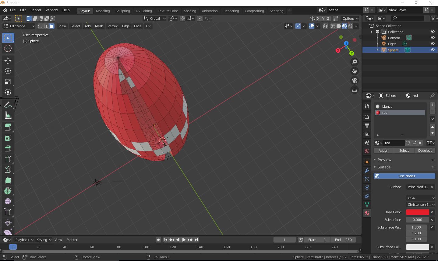 Saludos foro comparto este error en la última versión de Blender no la usaba desde la 2.79 en donde aprendí algunas cosas básicas del mundo del 3d al repasar un viejo curso que hacia hace un tiempo intente hacer un objeto añadiendo dos colores difusos al mismo colocando unos cuadros blancos a un cohete rojo pero al añadir el segundo color se me colocan transparentes algunas caras del objeto o se deforma en la vista de edición pero al procesarlo se ve normal a que se debe esto aca hay algunas fotografías saludos y Dios les bendiga agradezco su ayuda.