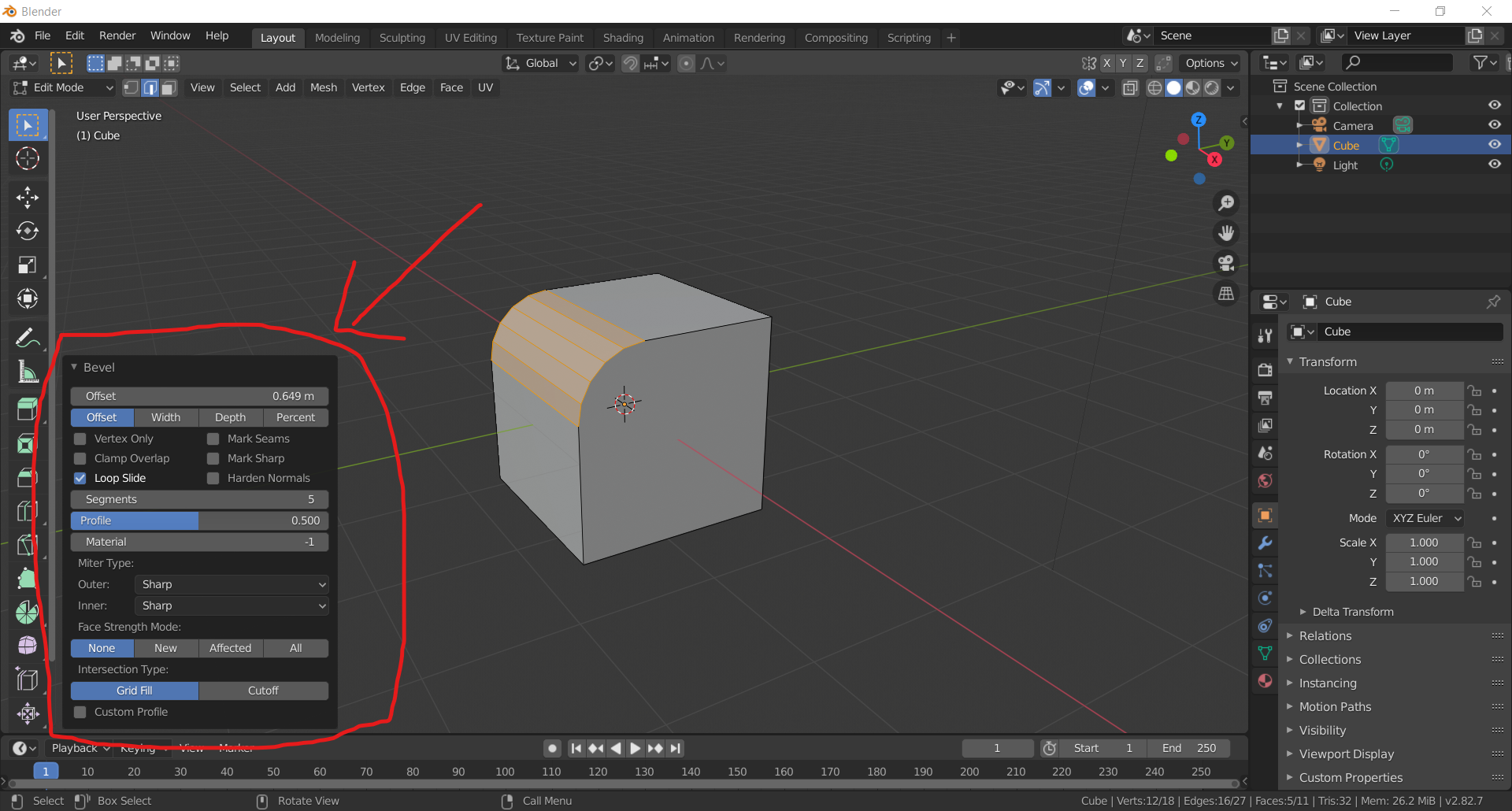 Pues cuando haces un bevel, hay una serie de parámetros que modifican la forma en la que se comporta el bevel, si tienes más o menos segmentos, el perfil que dibuja (añadido no hace mucho en blender), etc.
