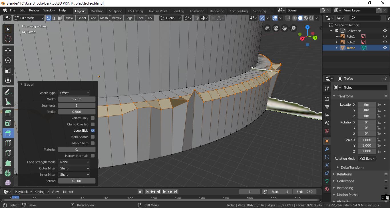 Chicos consulto en este post ya que es el título que hubiera puesto pero en mi caso el inconveniente es que al hacer el bevel se desordenan los vértices. Algunos se desplazan bien y otros para otras direcciones. ¿Qué puede estar causándolo?