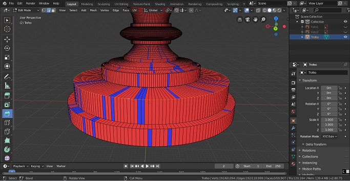 Quizás es un error común que cometí pero no me había pasado antes. Comencé a diseñar un objeto a partir de un cilindro de 196 aristas, hice algunas extrusiones y al intentar hacer un biselado al primer escalón ocurre esto. Vértices rebeldes. :)