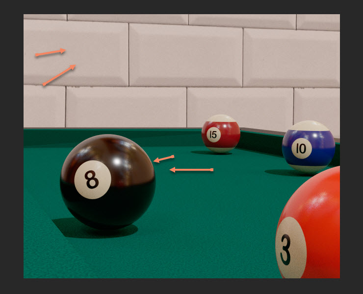 La pared no pega nada y la tengo que mejorar y lo que no sé muy bien como cambiar es el reflejo demasiado uniforme de las bolas.
