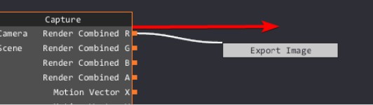 5.Ahora necesitamos crear nuestros nodos de captura de imágenes para capturar los datos de cada uno de estos canales para que podamos exportarlos. Arrastra uno de los pines de salida de la captura nodo para crear un nuevo nodo Exportar imagen.