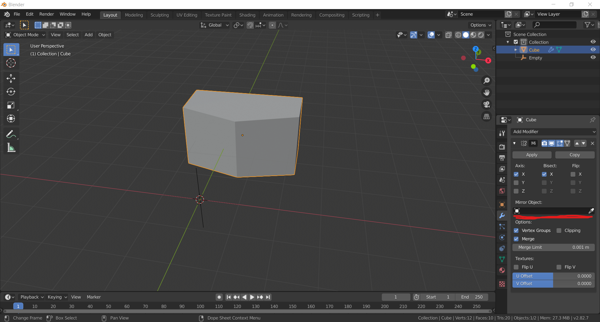 Hola. Tengo un problema al aplicar mirror. Estoy intentando hacer el mando de PS4, y he creído que lo mejor sería hacer un lado ya que son simétricos, y luego solo habrá que cambiar o poner detalles. Llevo el objeto al filo del eje y para plicar luego un mirror en ese eje, pero cuando lo aplico, parece como que el mirror se queda achatado, no tiene la misma longitud que la pieza original.