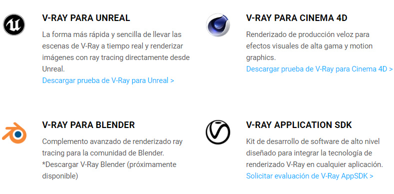 Conexión con otros entornos que utiliza el formato universal de archivos de escena V-Ray para integrar proyectos en cualquier pipeline de producción.