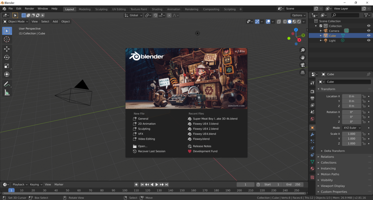 La evolución de la interfaz de Blender.