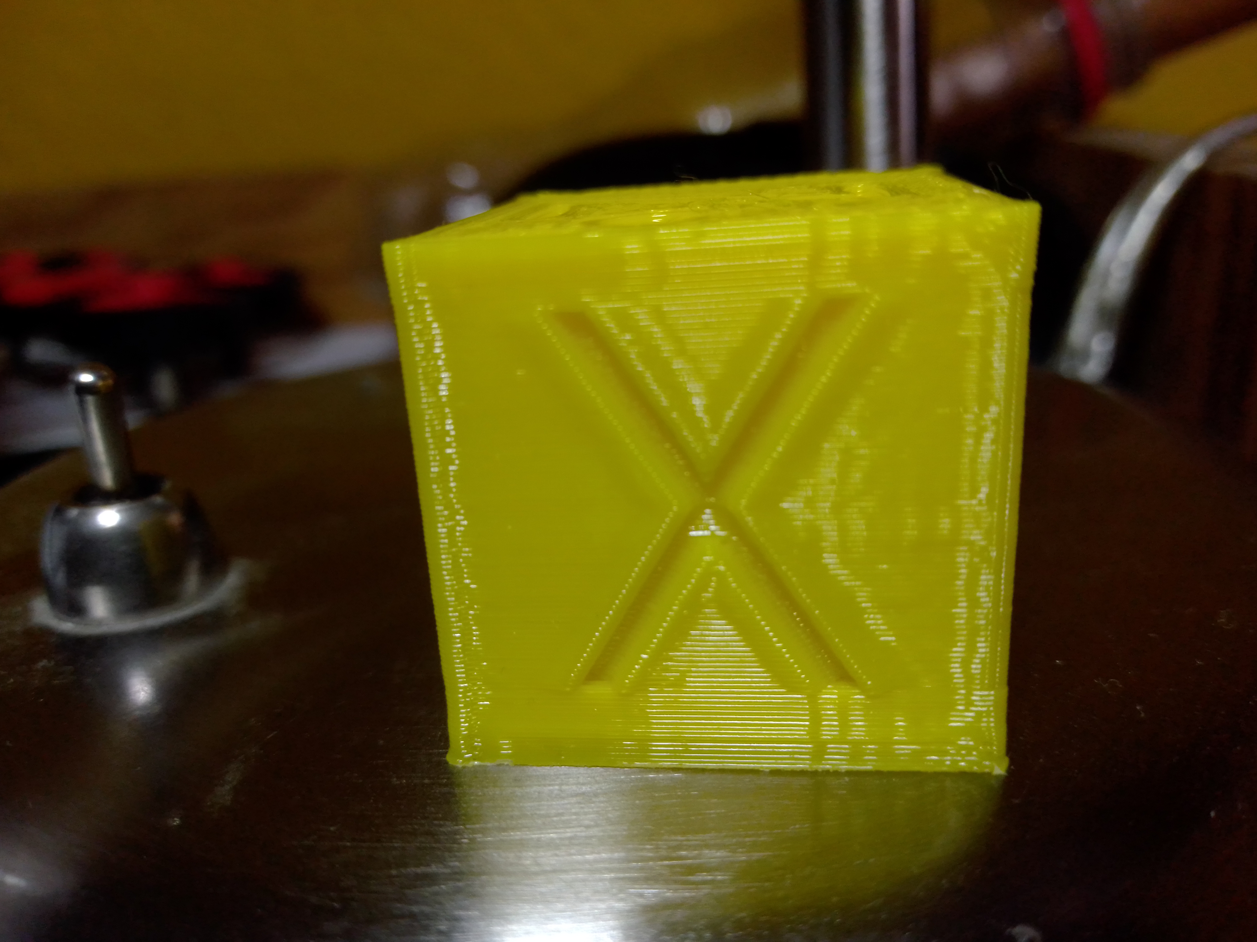 Me di cuenta de que el cubo tenía caras hundidas en los ejes X e Y, y la cara superior se veía embarrada o cosida. ¿Cómo es posible que esto suceda si en el eje Z se utiliza un tornillo? Supongo que se debe a las correas en los ejes X e Y.