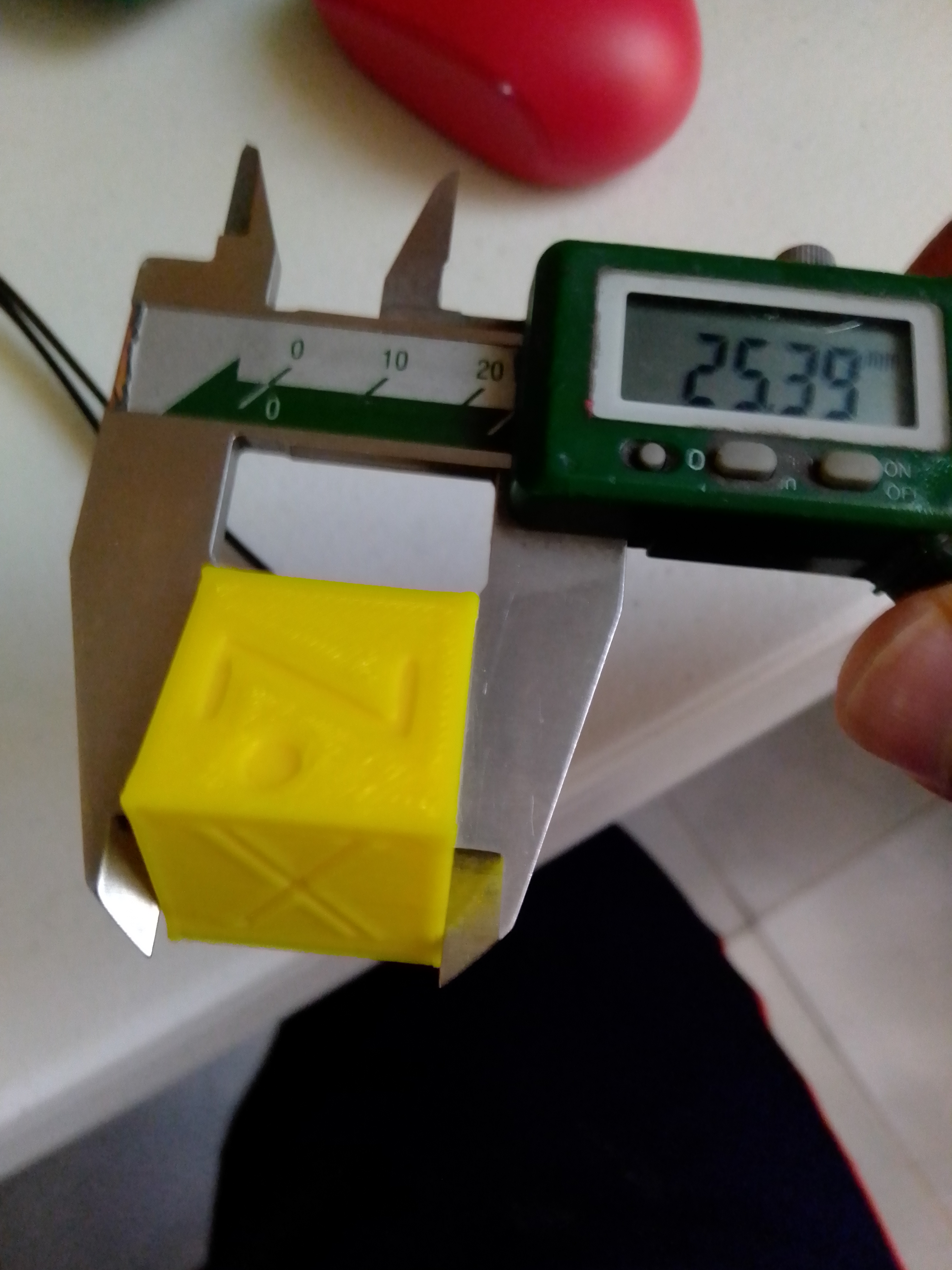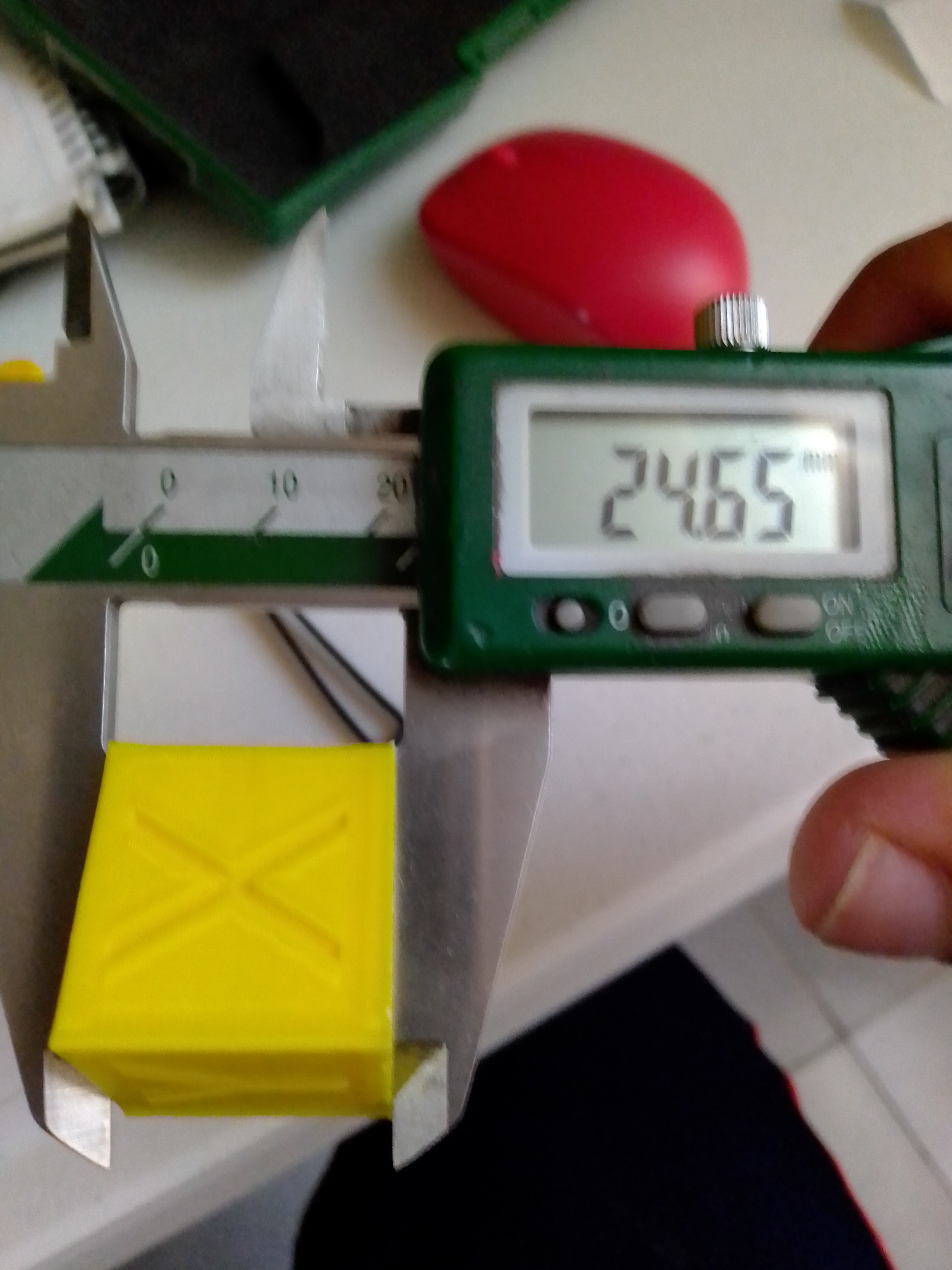 Hola a todos, hace un tiempo tenía dudas sobre por qué un perno no entraba en un barreno. Después de investigar un poco, encontré una posible respuesta. Para probar la calidad de mi impresora, imprimí un cubo de calibración de 25 mm^3, cuyos parámetros de impresión fueron los siguientes: