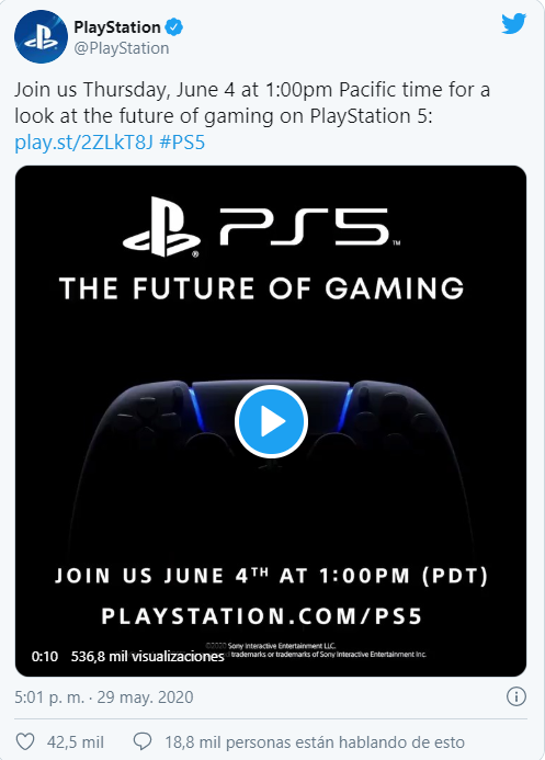 PlayStation ha anunciado la fecha oficial del evento de PS5 y será el día 4 de Junio por la noche a las 22:00(hora española). PlayStation va a enseñar un primer adelanto de los juegos de la nueva generación. Afirman que la presentación durará más de una hora para enseñar el desarrollo de juegos que mostrarán el potencial PS5.