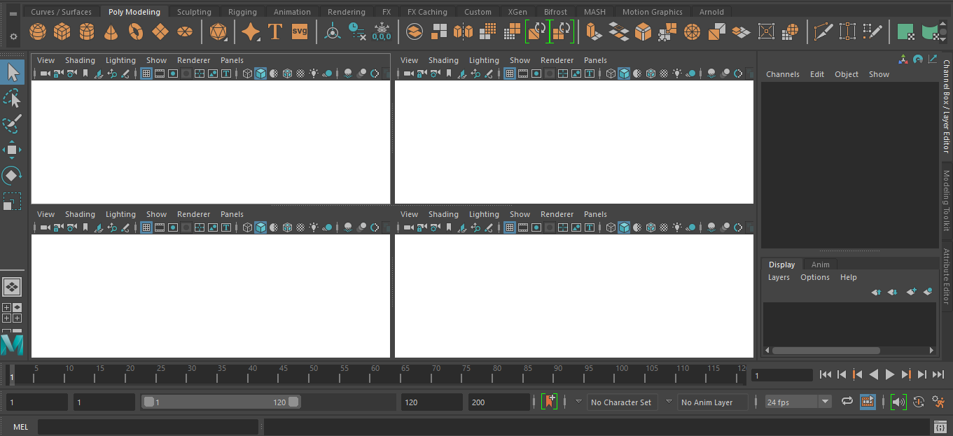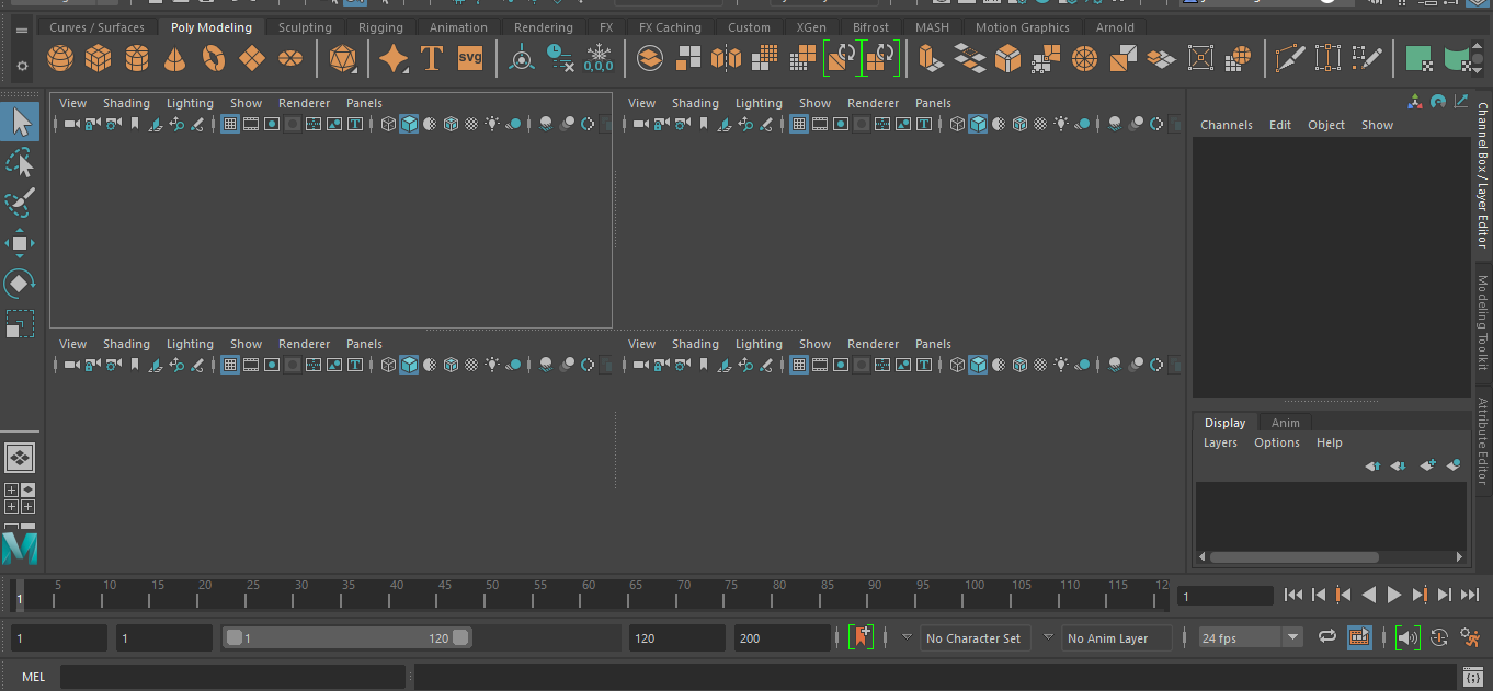 Estoy empezando a aprender Maya, pero tengo problemas con el espacio de trabajo, no sé si sea un error o algo que se cambie simplemente configurándolo, pero según he visto ya en muchos tutoriales, debería de salirme una malla base en el espacio de trabajo, en lugar de esto tengo todo el ambiente gris y si intento crear una figura no se ve nada, es como si el programa estuviera ciego, no sirve ninguno de los modos de trabajo. tampoco me aparece el indicador de los ejes Y, X, Z, en la parte inferior izquierda.