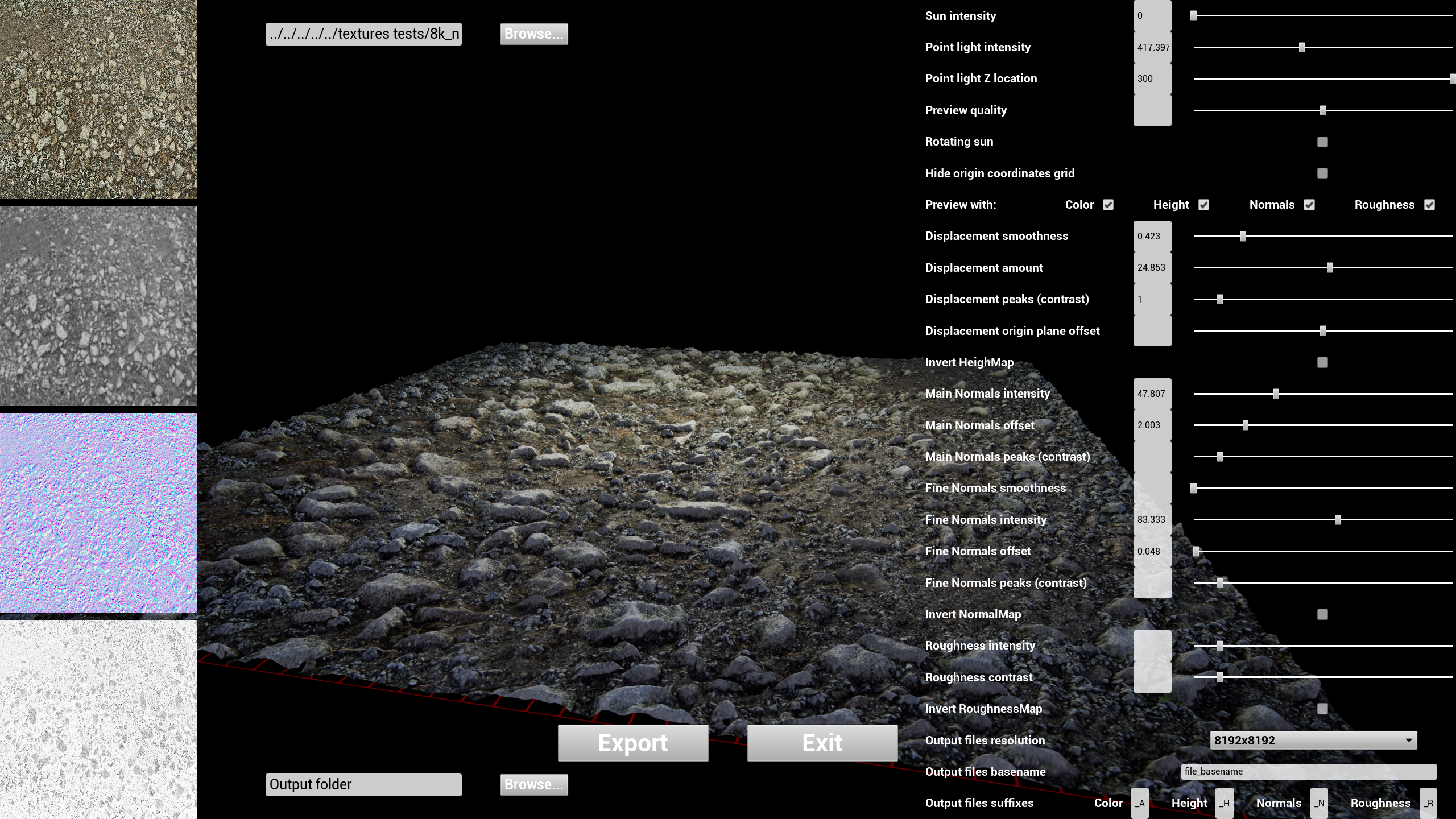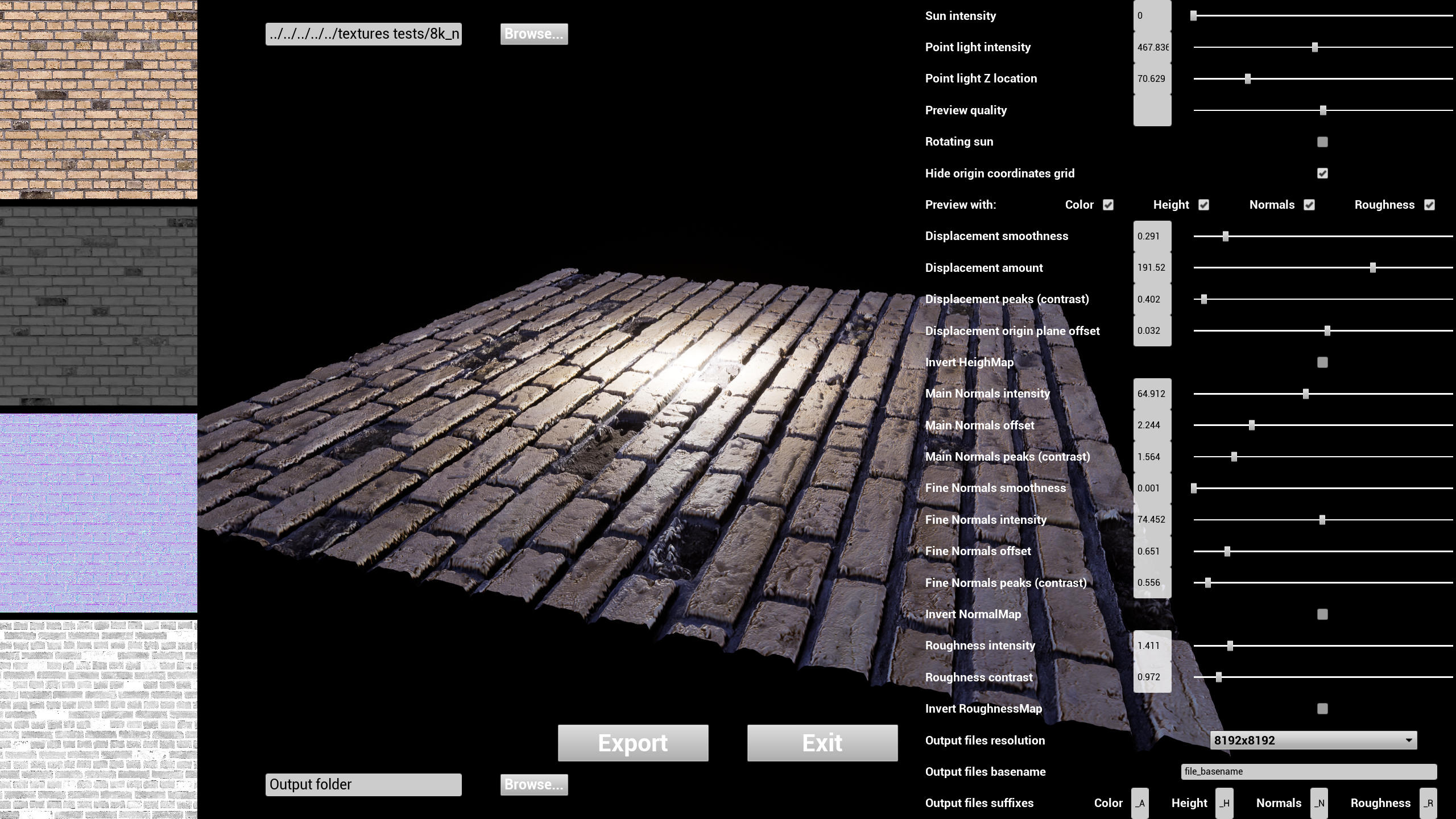 Abro este hilo para contaros que he estado trabajando en un programa para generar texturas PBR (normales, displacement y roughness) a partir de una textura de sólo color. La idea es terminar lanzando esta herramienta en plataformas como Steam, itch.io, etc. A precio asequible.