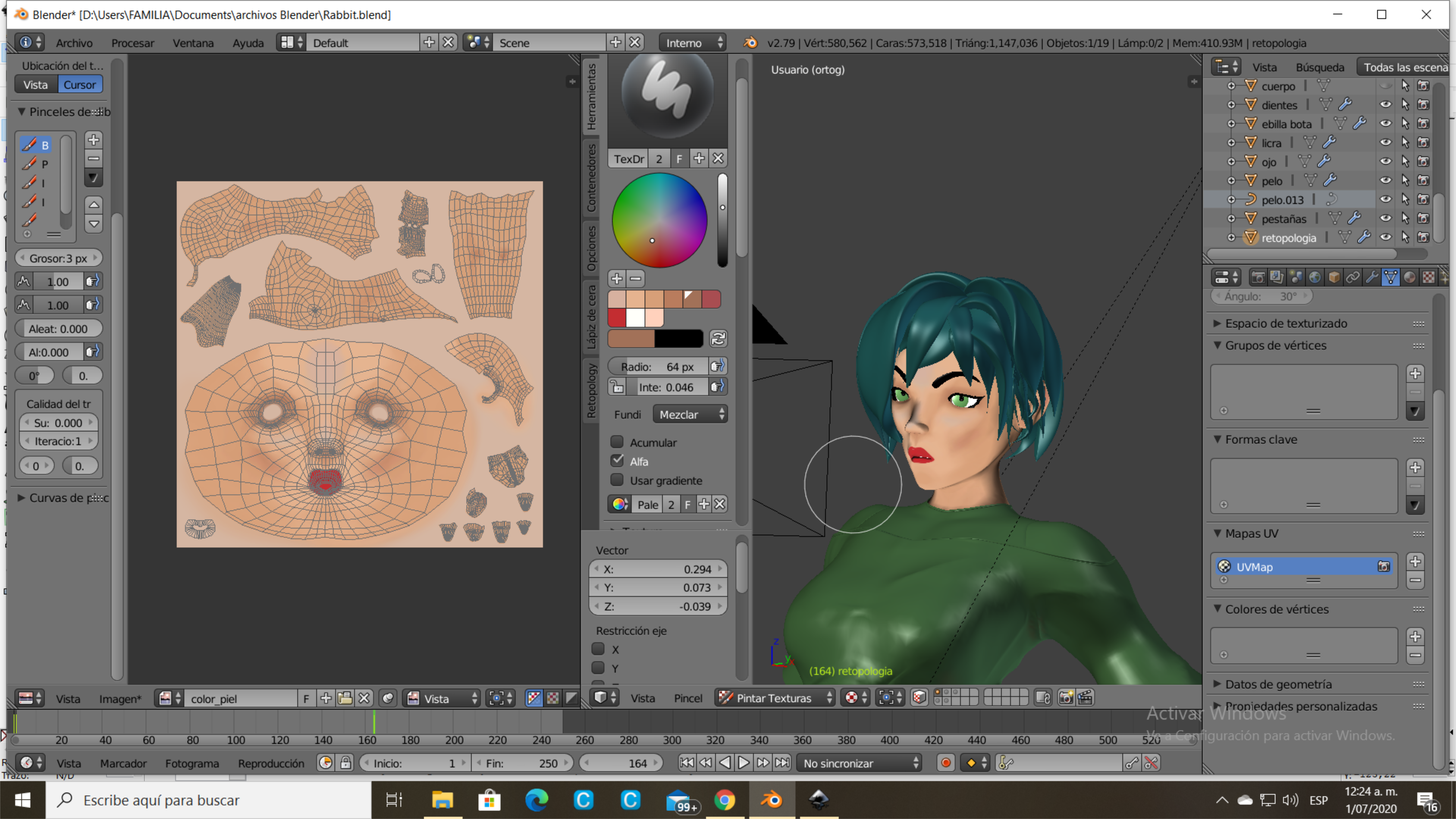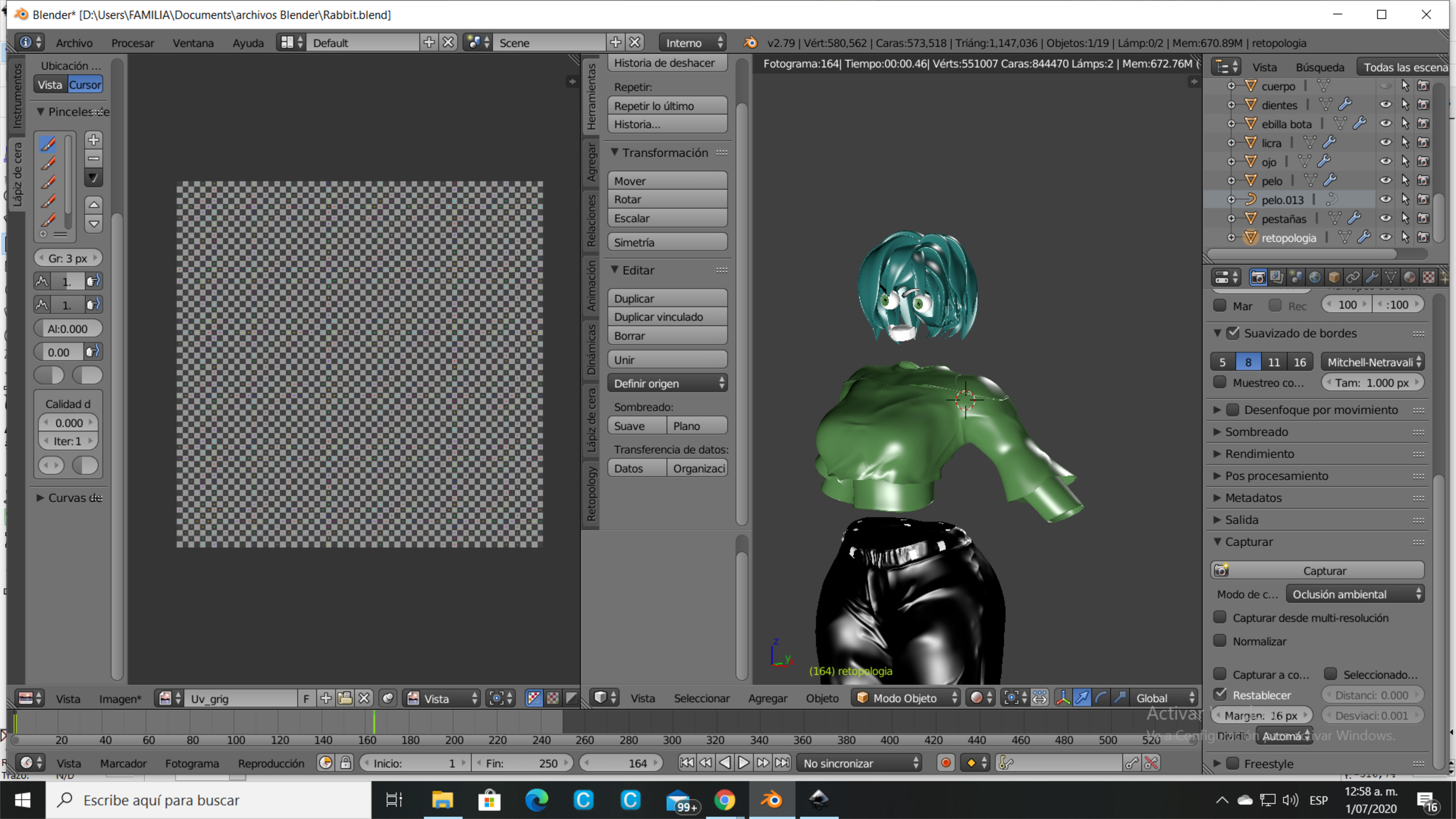 Hola buenas noches, empecé un proyecto de crear un personaje en 3D en Blender 2.79, primero hice un esculpido, luego retopología y luego texturizar.